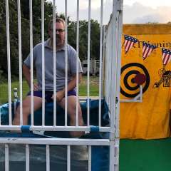 The big guy gets it was plunged into a dunk tank of molasses after the target was hit by davestafford